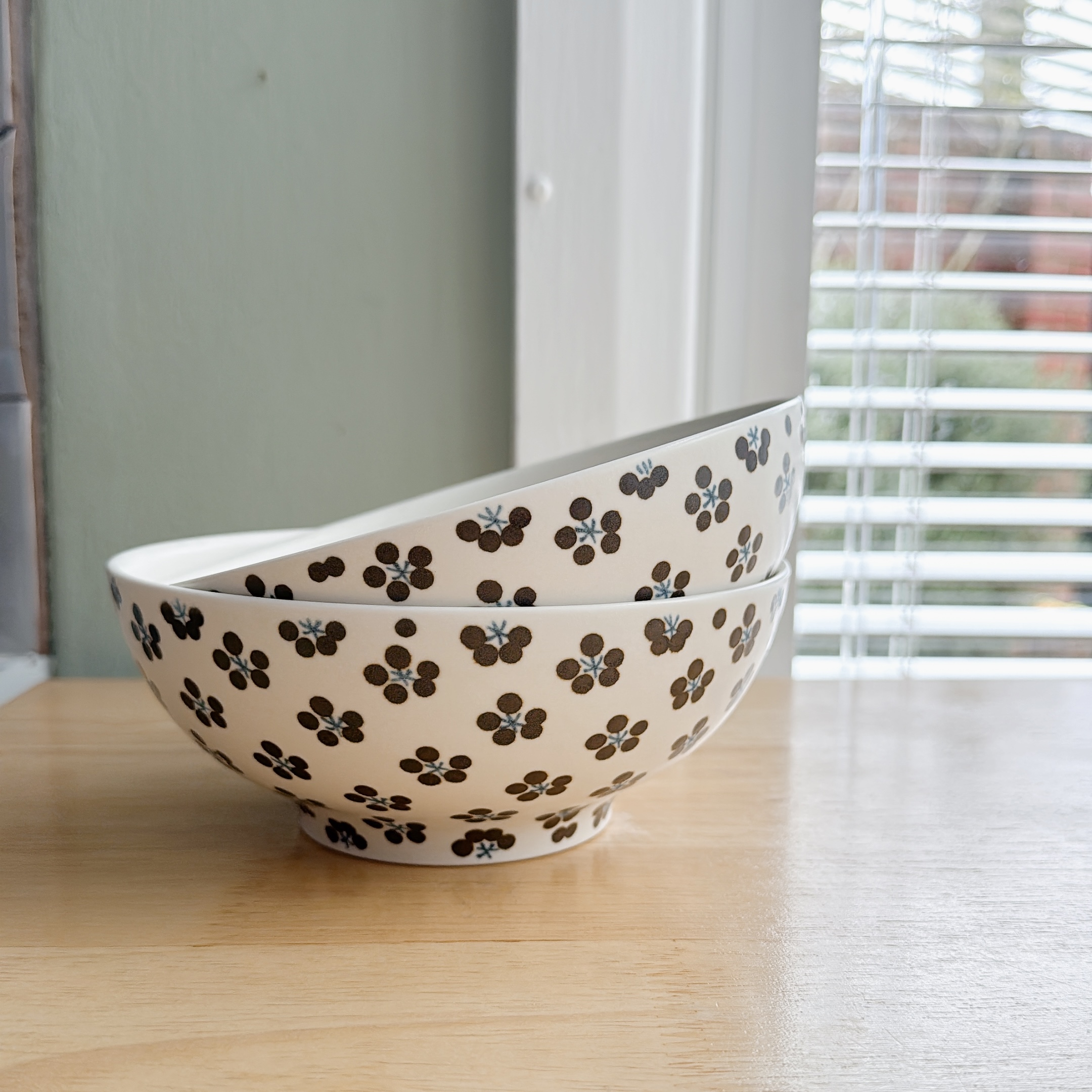 This playful pattern of "komon" is one of the studio's signature styles, which comes from old kimono patterns. This version is with a blue hue giving more sharp and elegant impression.